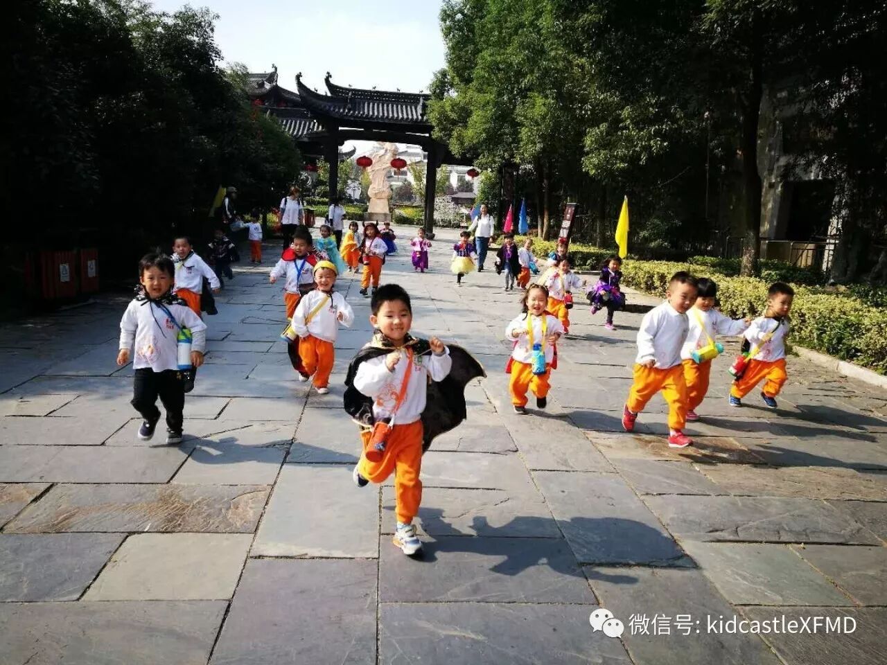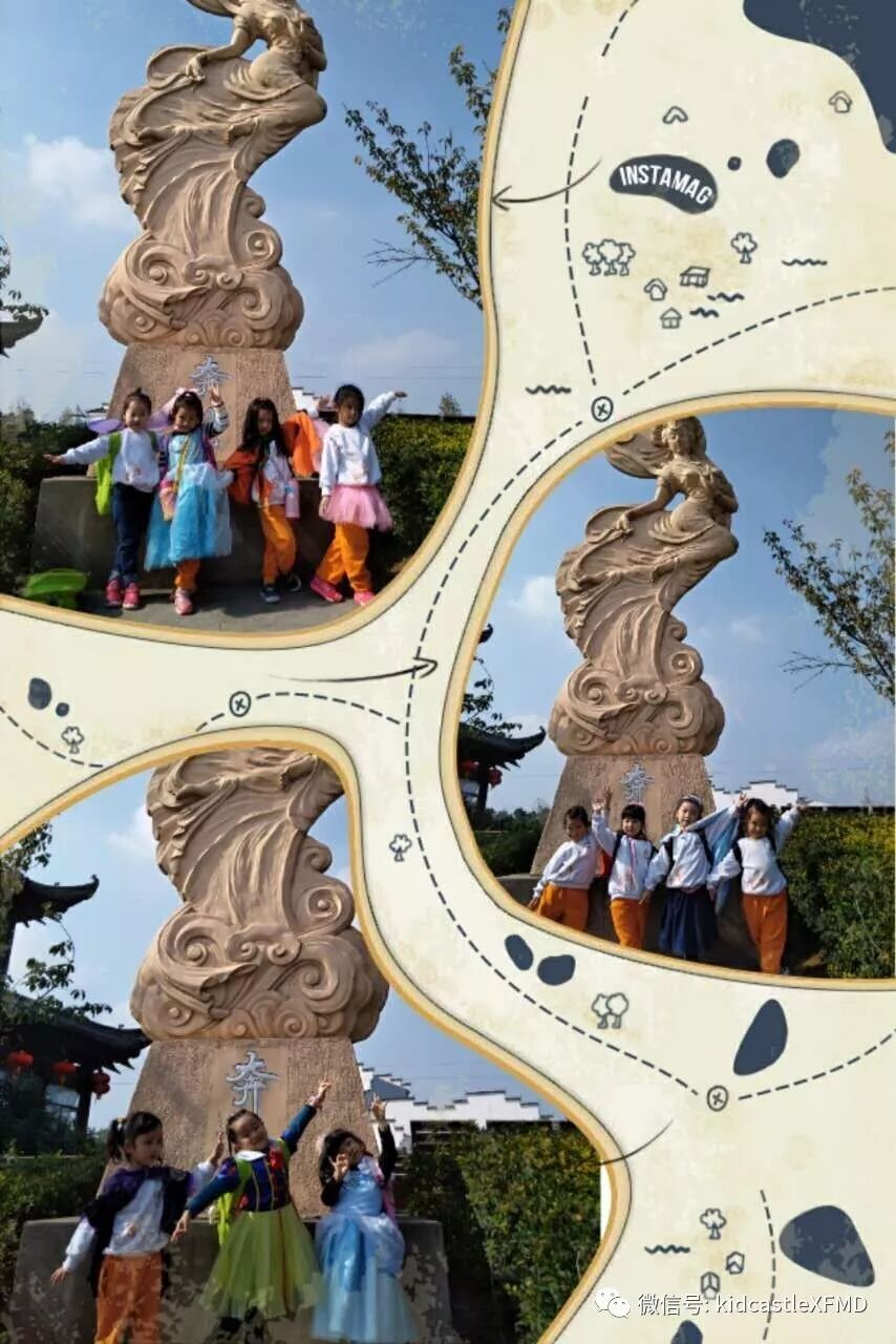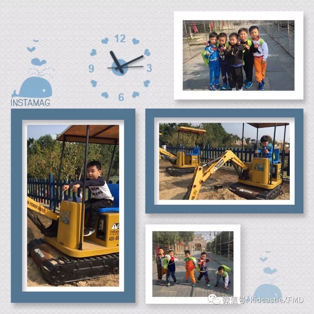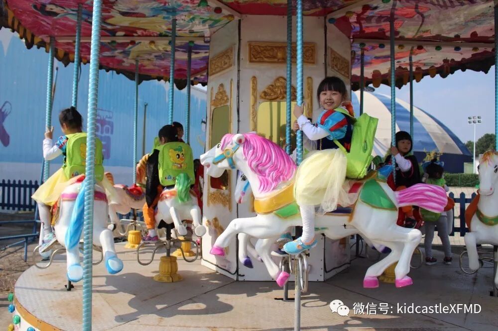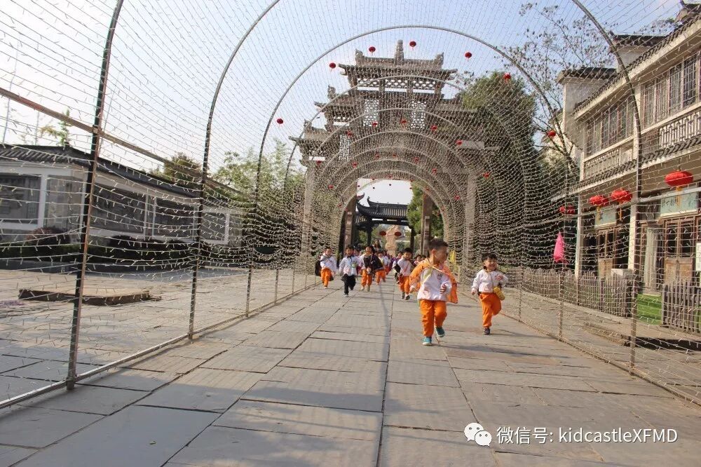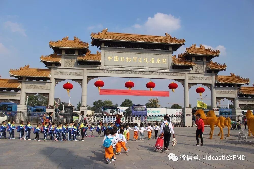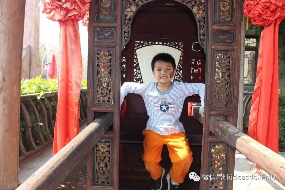在这如歌如画的季节里你拉着我,我拉着你,漫步在非遗园里感受那份徽派建筑的厚重与那份诗意的宁静里。或者停下来体验一下挖土机、旋转木马、抬花轿等等,又或者在树丛里捡捡松果,在草坪上做做游戏。