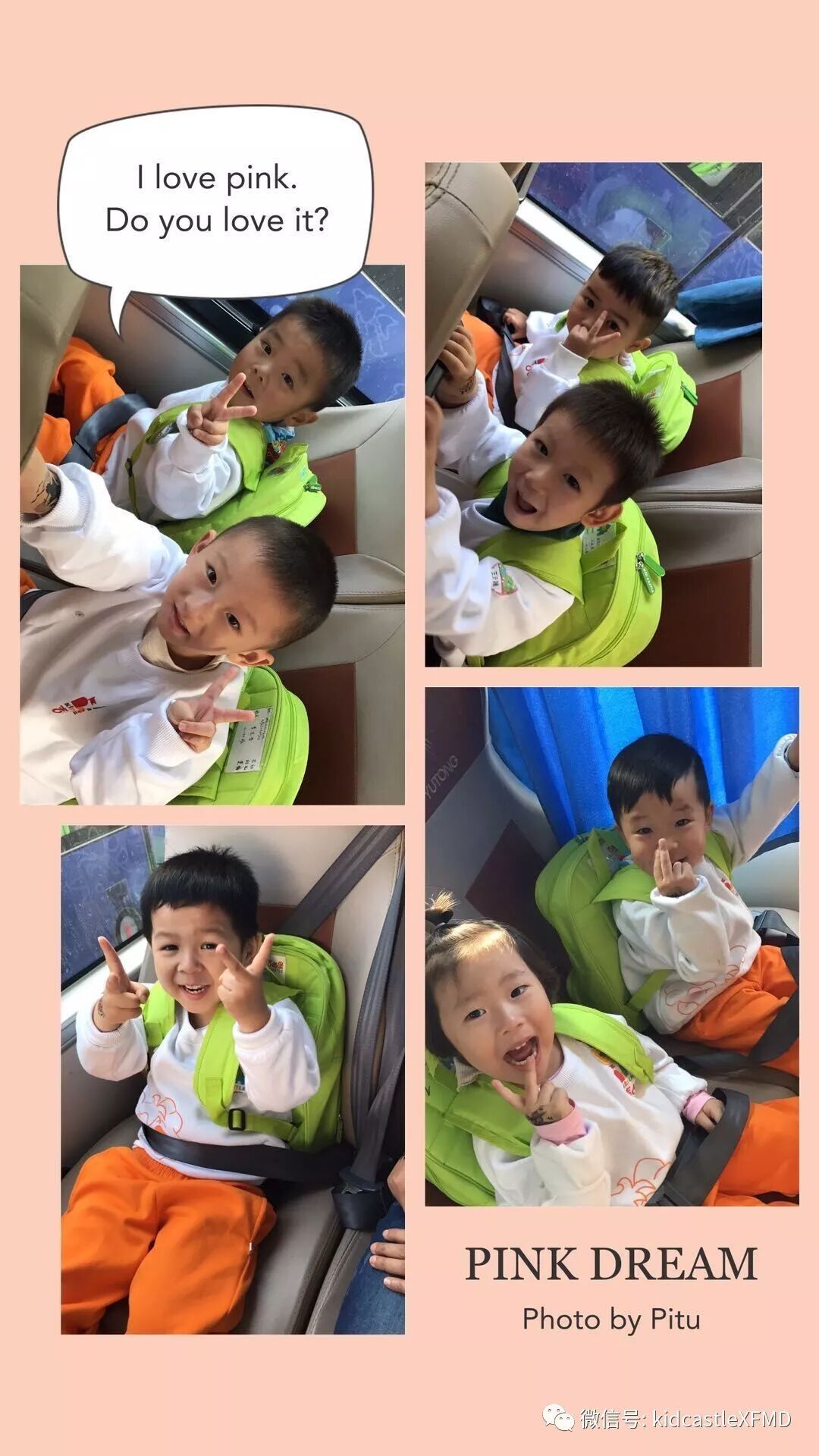 早上九点左右,排好小队伍,坐上大巴车,我们要出发了啦!