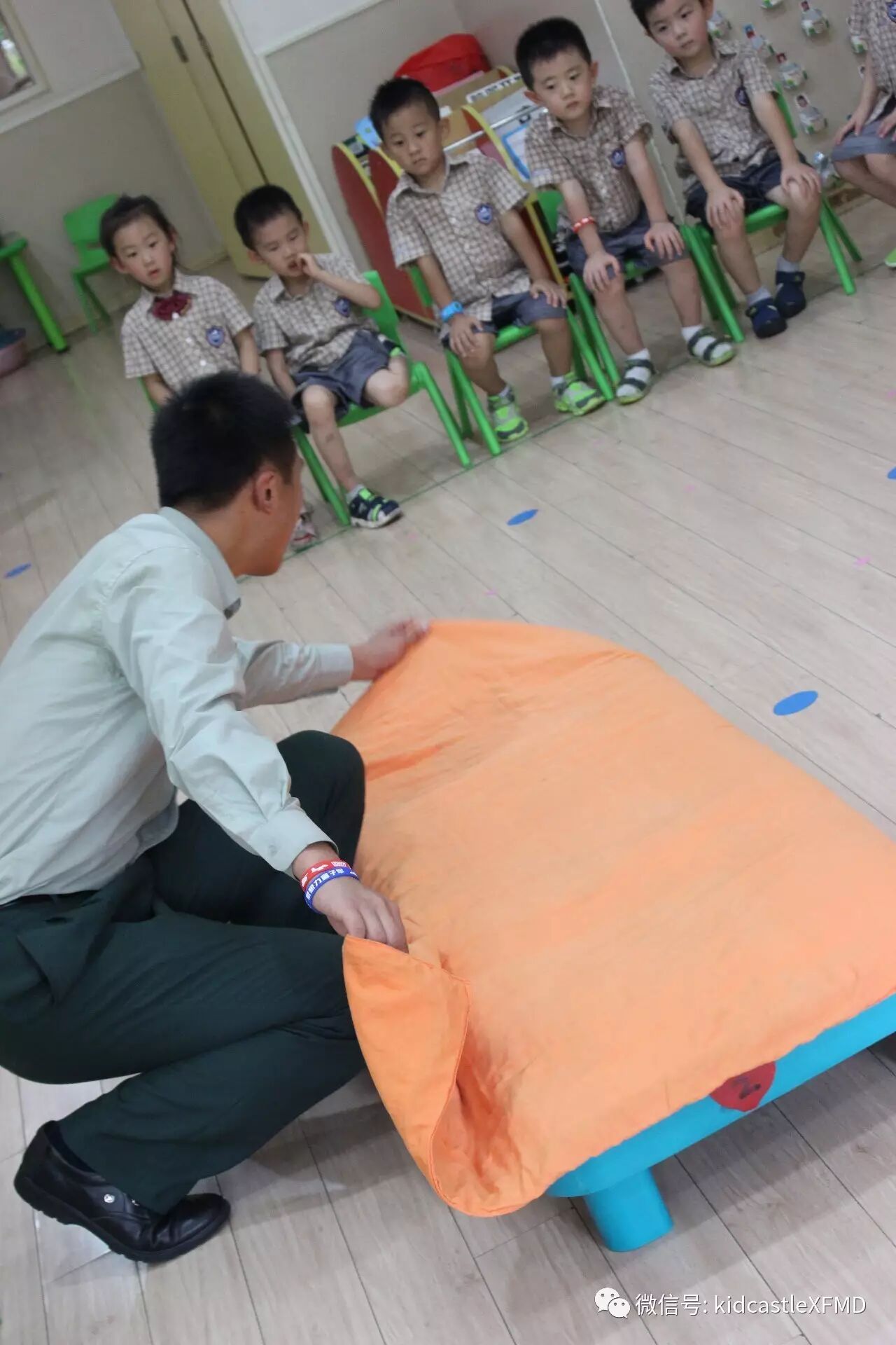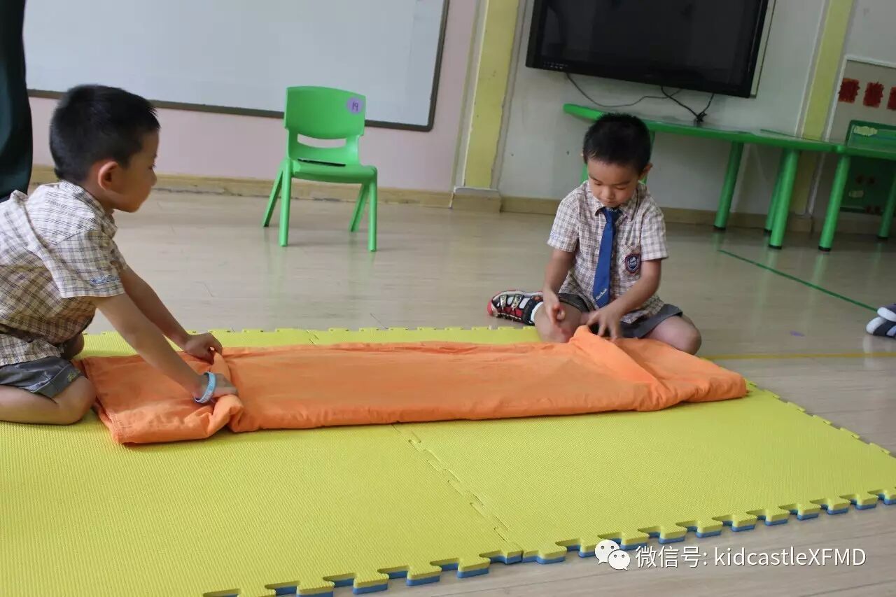 在教官师范动作过后,各班级纷纷组织幼儿学习整理内务,并决定于当天分年级组进行海选,最终进行内务整理全园总决赛!