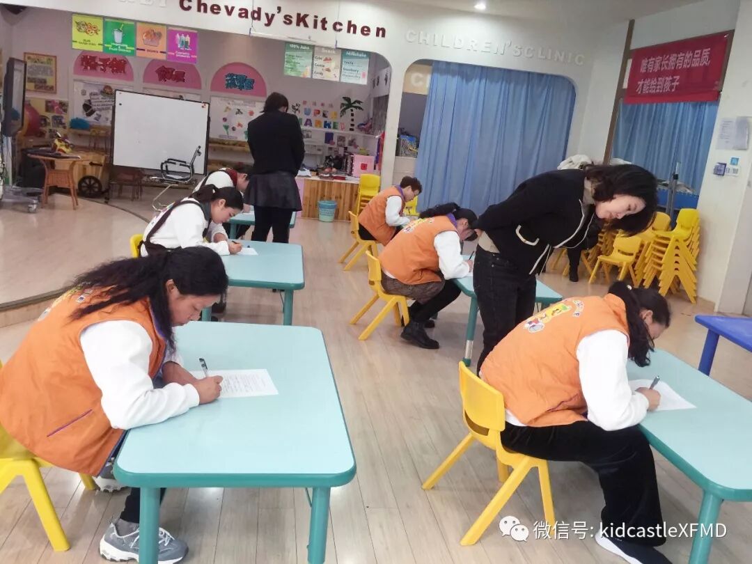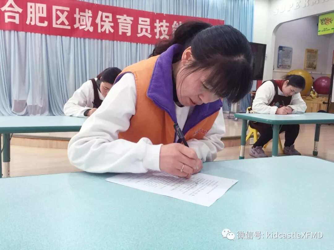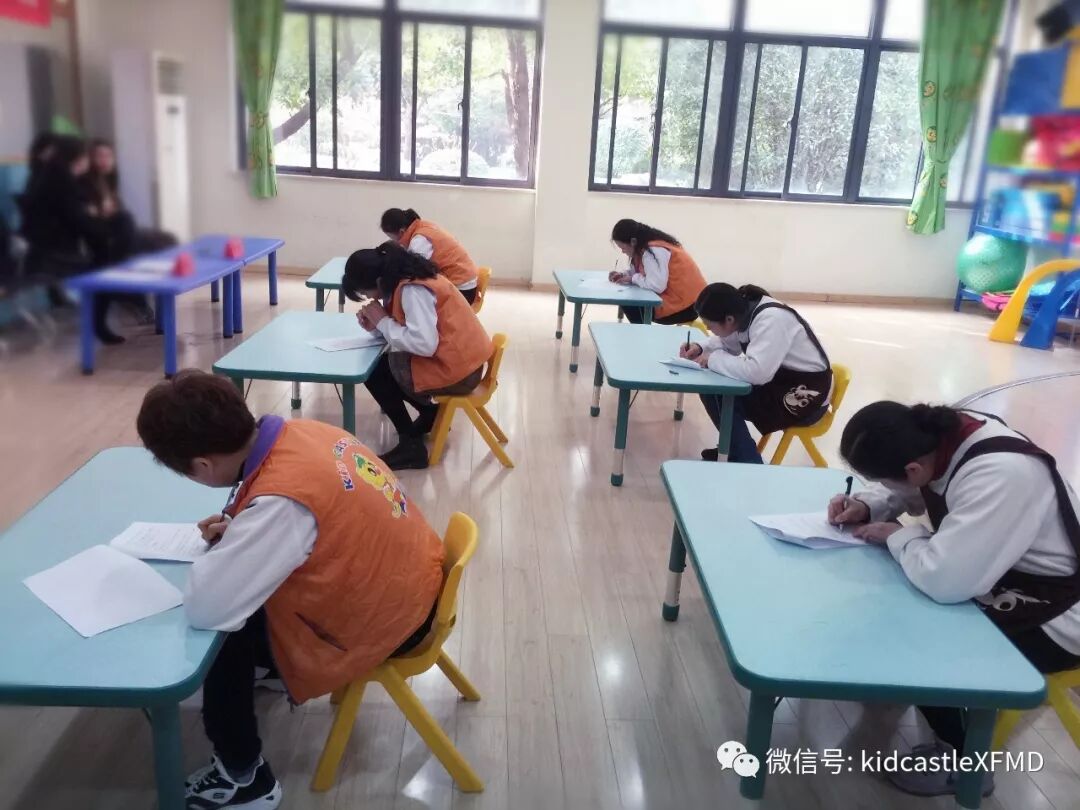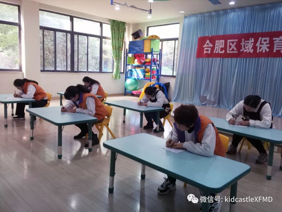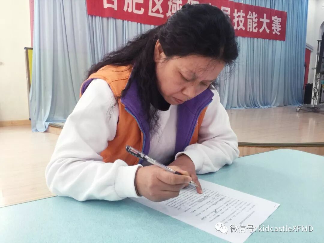 本次比赛包括理论笔试与实践技能操作两个部分的内容,保育员需要进行理论知识答题与常规工作操作演示。大赛的第一项就是理论知识答题,题目涉及生活护理、卫生消毒、疾病预防、安全知识等多个方面。每位老师都准备充分,认真答题。