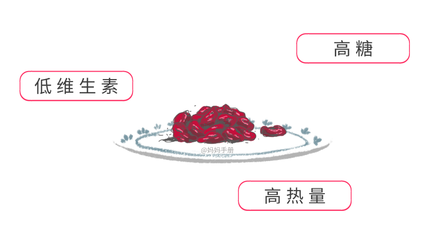 此外蜜饯是一种高糖、高热量、低维生素的零食,孩子身体在代谢的时候,会需要消耗大量的维生素B和一些其他维生素,对身体发育是十分不利的。
