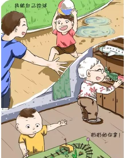 父母担心孩子被欺负,所以当孩子和小伙玩们玩的时候,在一旁紧紧盯着、护着,父母的爱看上去很伟大,但却让孩子失去了独立、强大的机会。