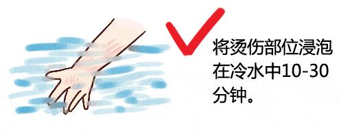 先找冷水,在孩子烫伤的地方冲洗20分钟以上,尽量不要直接使用冰块冷敷,反而会让皮肤再次受伤害。