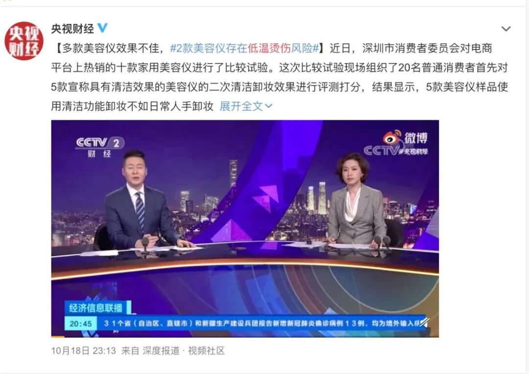 前几天央视财经还提到,深圳市消费者委员会对十款热销家用美容仪做了测评,