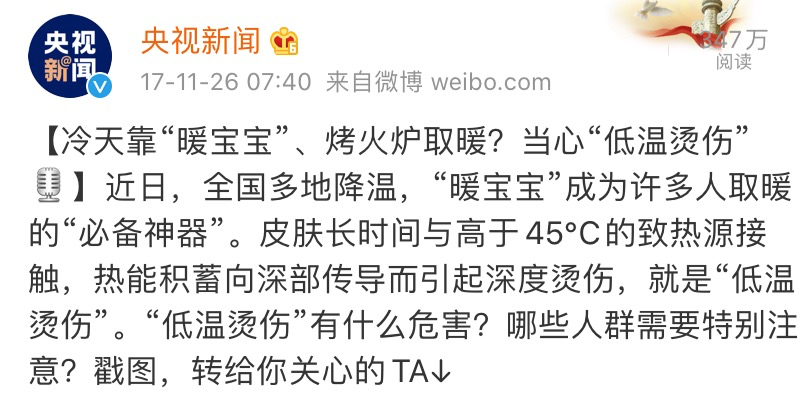 央视新闻之前就曝光过,冬季低温烫伤频发,热水袋成罪魁祸首,有不少人被意外烫伤。