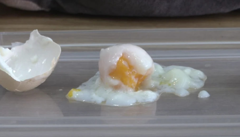 用两片发热内芯包住鸡蛋,再整体包裹在棉布中,12个小时后,鸡蛋基本上处于一种被烤熟的状态。