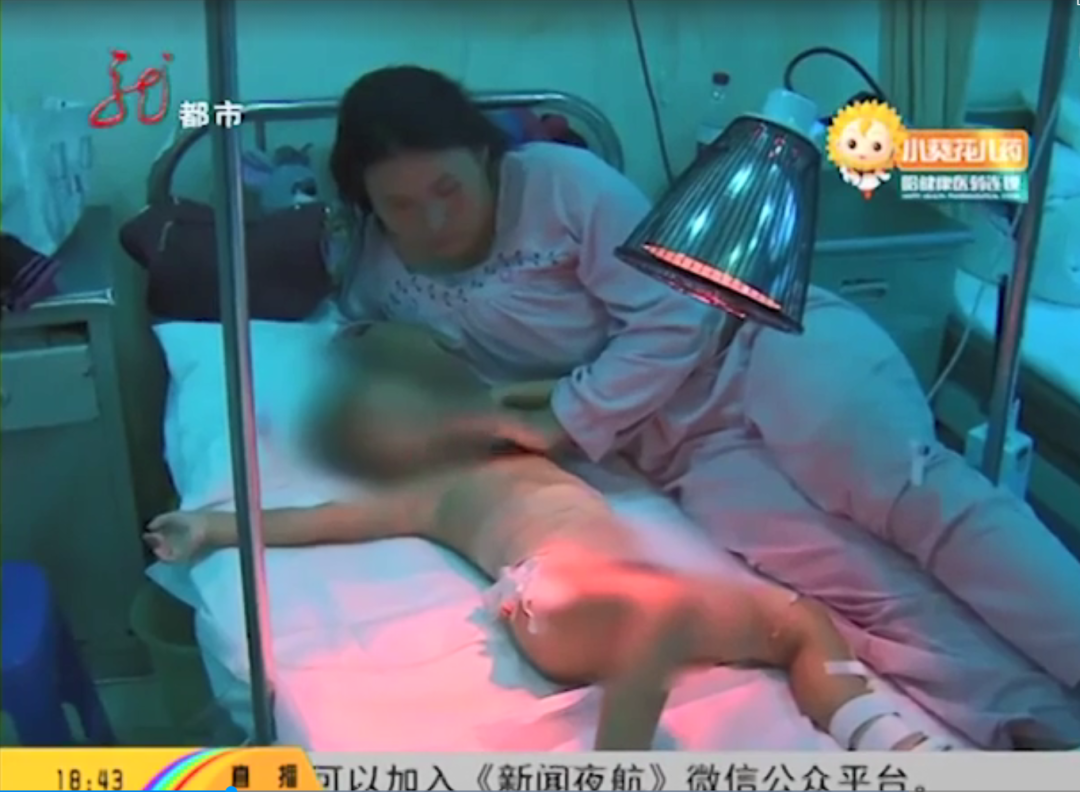 她赶紧飞奔到床前,被眼前的一幕吓呆了:女儿站在床上,全身湿漉漉的,腹部和双腿被烫得通红,当时就脱了一层皮。
