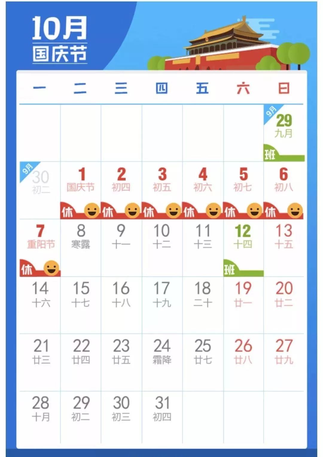10月12日(周六)正常上课