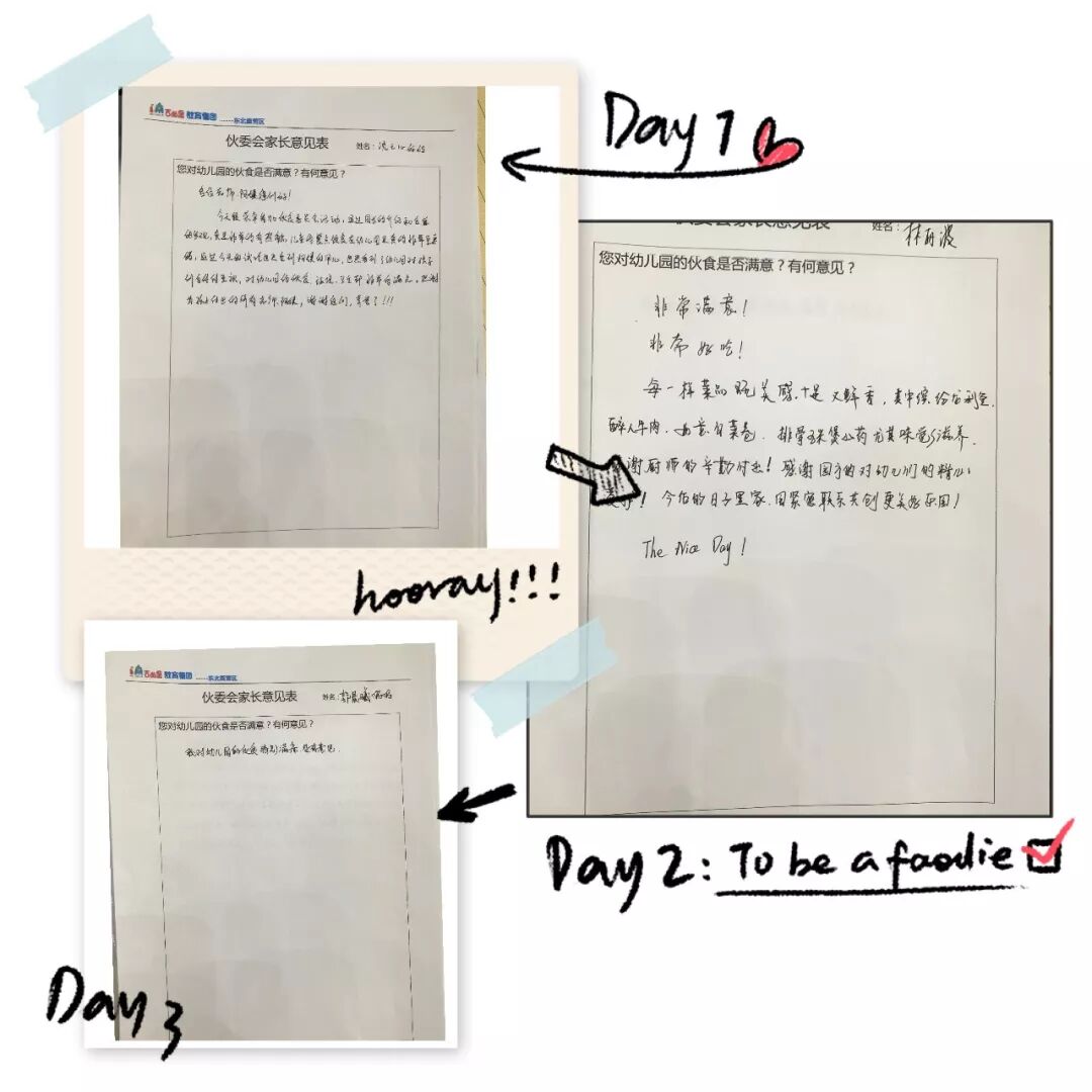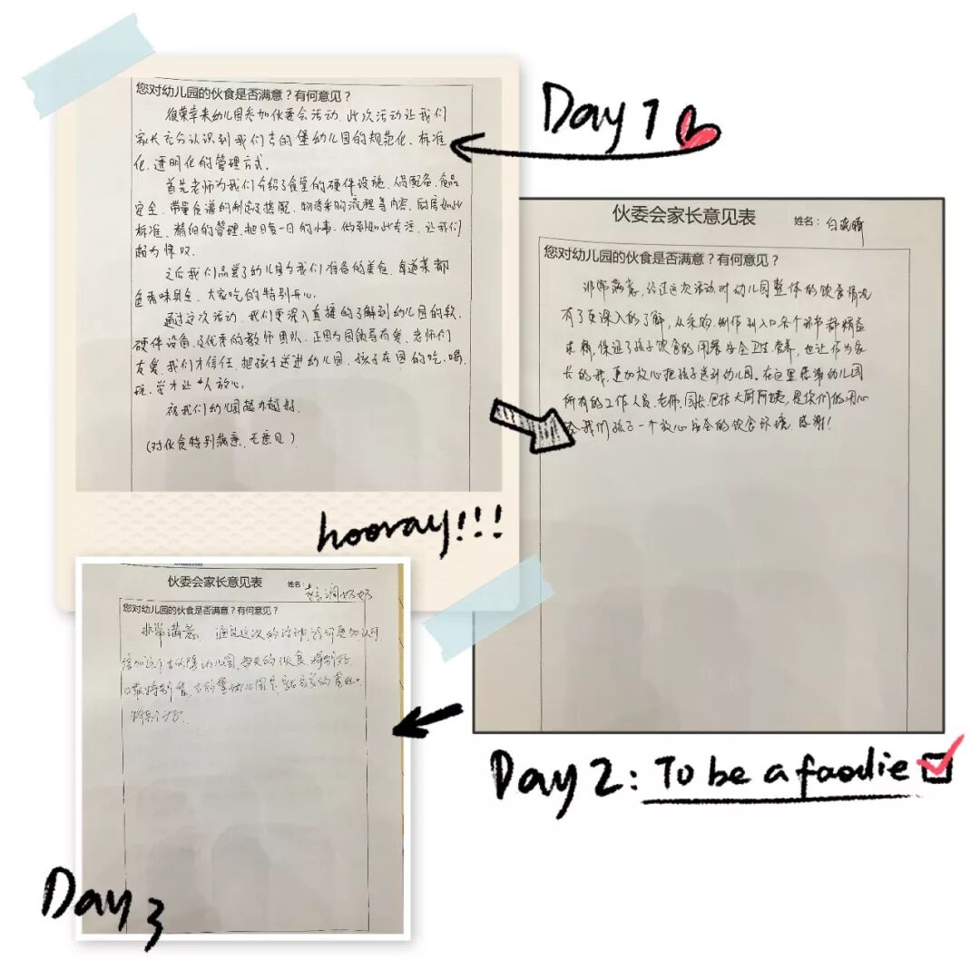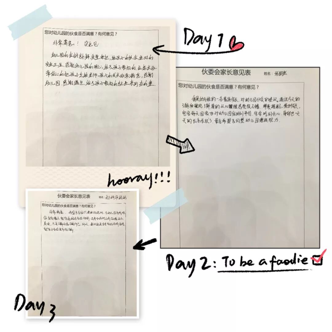 品尝过美食的家长们一个个赞不绝口,纷纷竖起了大拇指,为我们的花样餐点点赞,也为我们的伙食工作提出了很多宝贵的意见和建议。