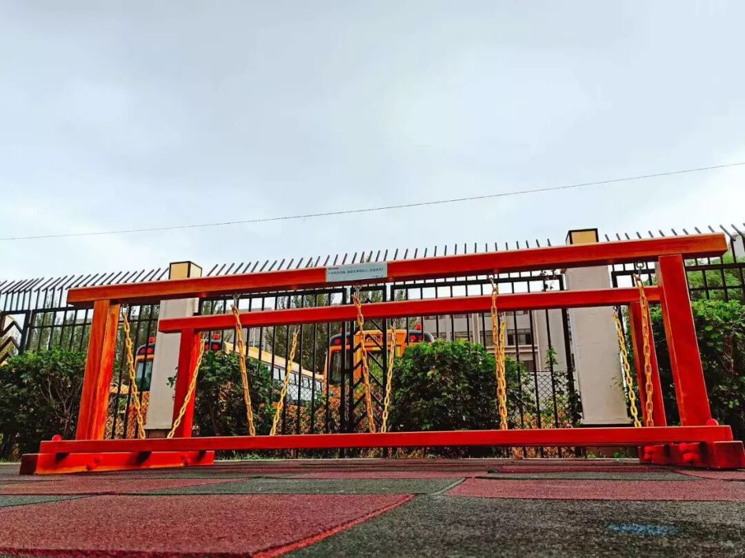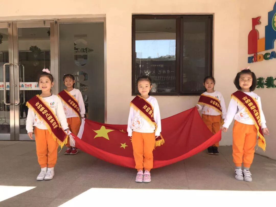 与全体吉的堡的老师小朋友们仰望五星红旗迎风飘扬。
