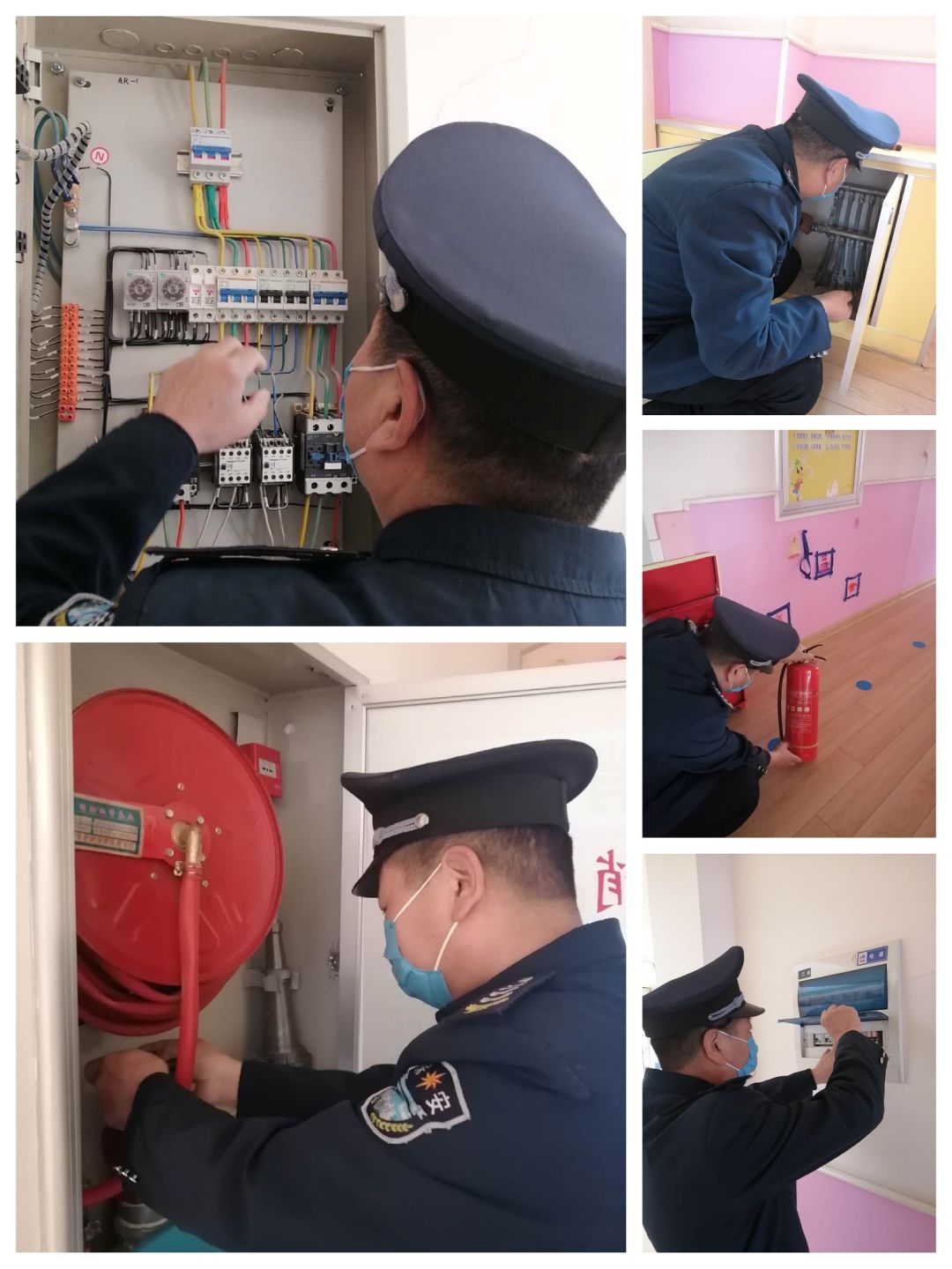 首先,对园内及室内环境进行了全面的隐患排查,对门卫、大型玩具、教室电路、消防器材等设备设施进行了全面仔细的检查,对存在的不安全因素及时记录和整改。